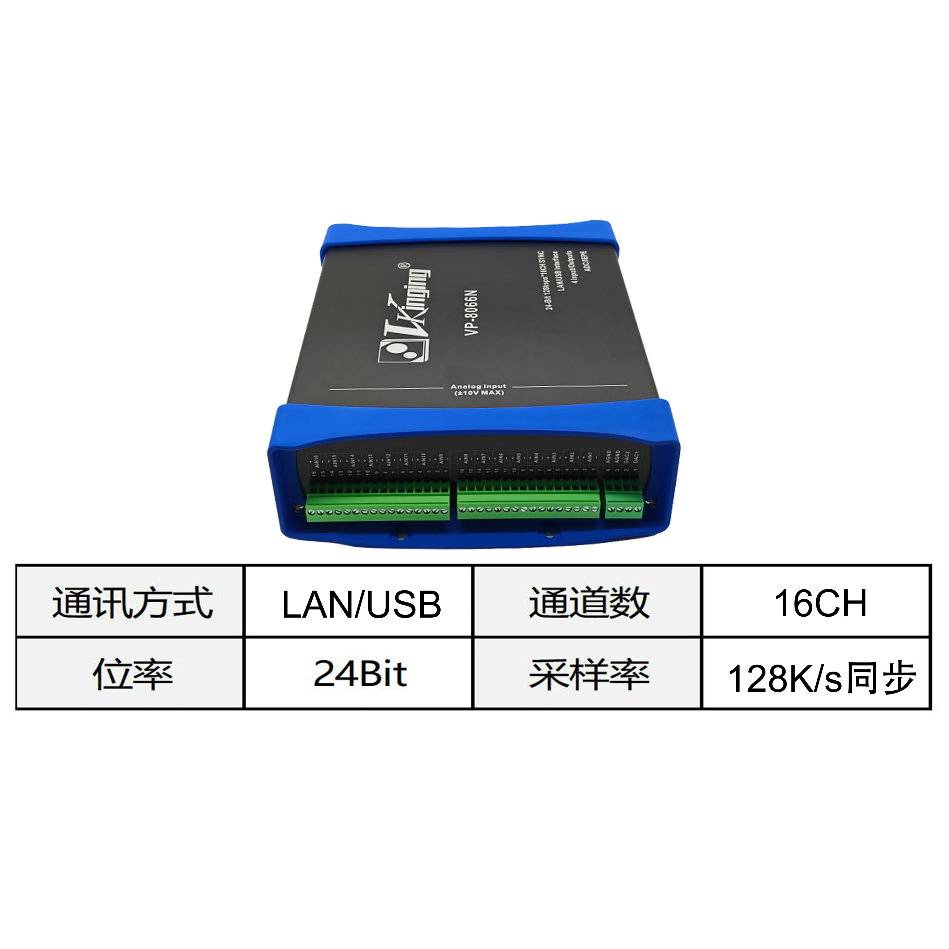 VP-6088 是一款WIFI/以太网/USB型高速数据采集卡(-U后缀为USB型,-N为以太网型,-W则为WIFI型,灵活满足各种使用场景的需求)具有8通道真差分输入,24位分辨率,单通道最高采样率204.8ksps。8通道同步共计1638.4ksps、精密前置增益放大、千兆以太网传输单元,集成IEPE/ICP硬件支持的特点。本产品采用了多个高精度24位ADC单元及配合本公司多年积累开发的前置差分放大模块,使得本产品具有高速率、高分辨率、高精度、超低噪音、高抑制比、测量范围广、低温漂的优点,适合精密高速率采集的各种场合使用。采集卡内部集成Linux系统,应用层接口对用户开放,可灵活轻松实现嵌入应用的再开发。 采集卡支持以太网接口/USB接口通讯,SD离线数据存储等, 同时我们也支持高度定制服务。¥ 8200.00立即购买